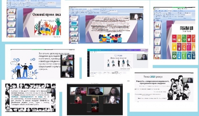 Учасниками заходу було підготовлено цікаві та змістовні презентації. Зокрема, студентки МВ-19003б Закоморна Анастасія та Мариніч Валерія представили узагальнюючу роботу з даної проблематики – «Основні права людини», а Орос Богдана в своїй роботі «10 грудня – День прав людини» закцентувала увагу на окремих проблемах, що є найболючішими в останні роки у світі – скорочення нерівності, просування прав людини та в Україні – захист прав і свобод громадян в умовах пандемії COVID-19 та російської агресії, що потребує особливої уваги.