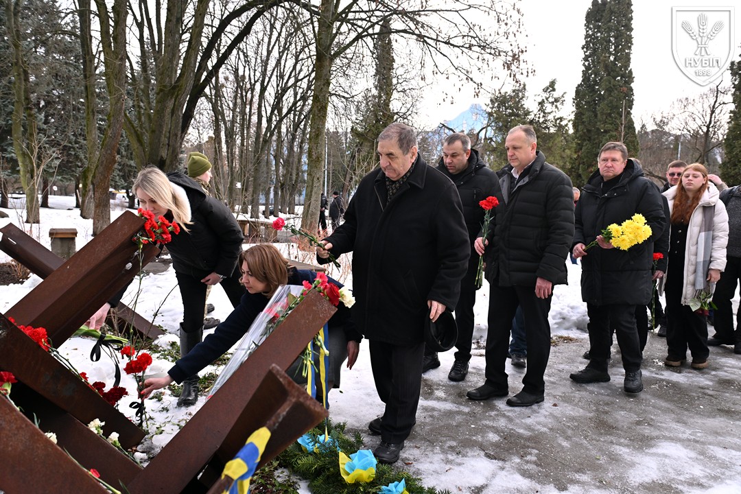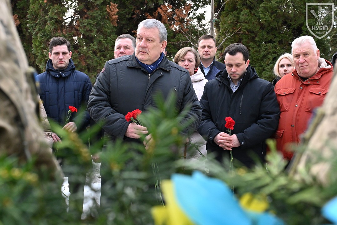 З ранку студенти, викладачі та співробітники факультету взяли участь у спільному з адміністрацією університету покладанні квітів до меморіалу загиблим героям на території НУБіП. Урочиста церемонія пройшла в атмосфері глибокої поваги та єдності: учасники хвилиною мовчання вшанували пам’ять полеглих, поклали квіти та запалили свічки пам’яті.