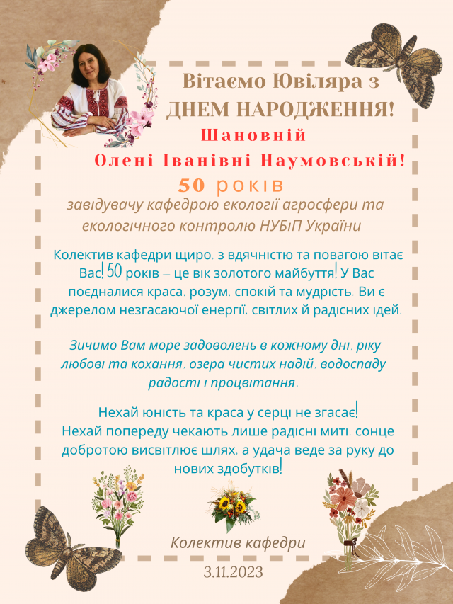 50 років Наумовській О.І. - завідувачу кафедрою! Вітаємо!!!