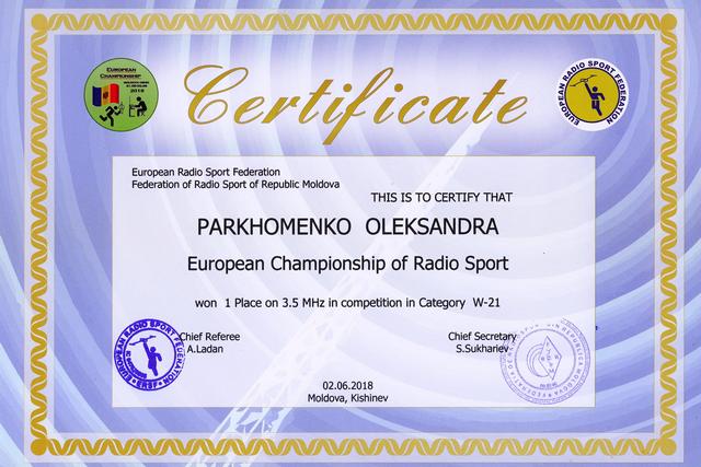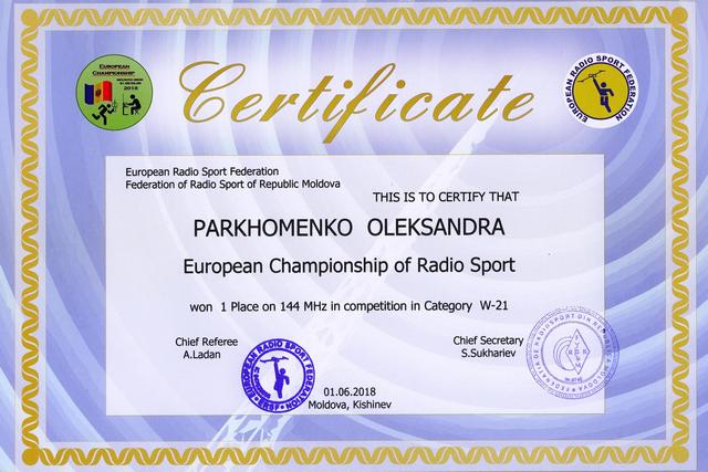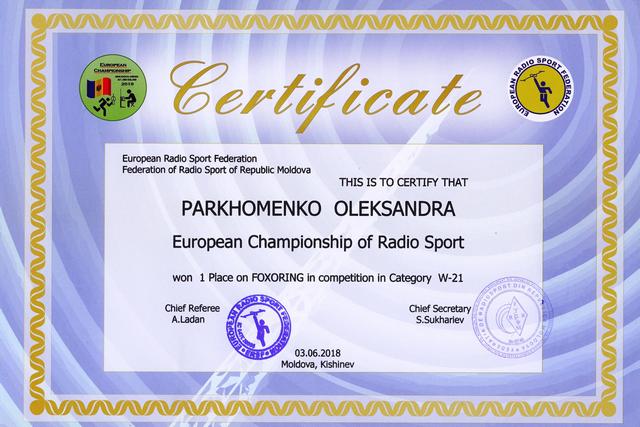 У змаганнях серед жінок в елітній категорії Ж21 виступала Олександра Пархоменко, аспірантка кафедри соціальної педагогіки та інформаційних технологій в освіті гуманітарно-педагогічного факультету, заслужений майстер спорту України з радіоспорту. Минуло лише 2 тижні, як Олександра пробігла міжнародний марафон у Варшаві (42 км 195 м) і от знову на теренах Польщі вона підтвердила статус одного з лідера світової еліти зі спортивної радіопеленгації вигравши забіги на дистанцію спринту і дистанцію радіоорієнтування на діапазоні 144 МГц та зайняла 2 місце на дистанції радіоорієнтування.