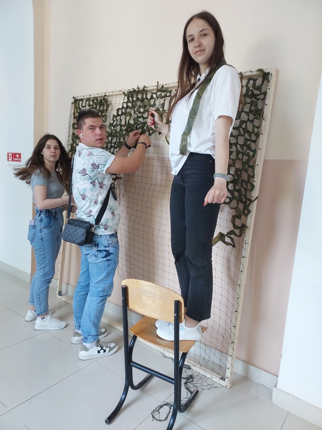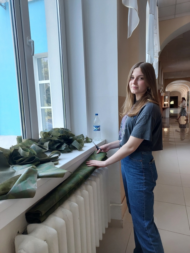 Не маючи ніякого досвіду в плетінні маскувальних каверів ми вчилися та вдосконалювалися з кожним новим побажанням від наших воїнів. Ми змінювали кольори тканин для плетіння залежно від пори року. І одного дня, коли батько нашої студентки звернувся з потребою у великій маскувальній сітці, ми змінили масштаб рамки і почали плести маскувальні сітки.