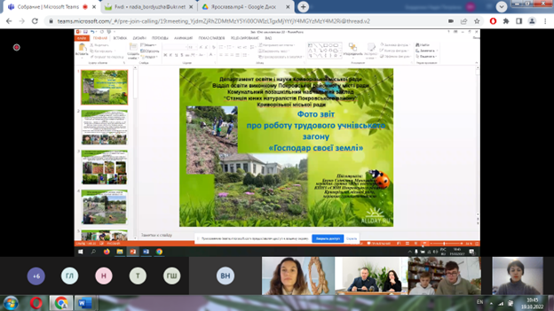 З 18 жовтня по 20 жовтня 2022 року в Національному еколого-натуралістичному центрі учнівської молоді МОН України було проведено Всеукраїнський зліт учнівських виробничих бригад, трудових аграрних об’єднань закладів загальної середньої та позашкільної освіти. Програмою Зльоту було передбачено відкритий захист науково-дослідницьких робіт у галузі рослинництва, овочівництва та садівництва, а також презентація виставки «Щедрість рідної землі» і відкритий творчий звіт членів учнівських виробничих бригад, трудових аграрних об’єднань. У журі від агробіологічного факультету працювали Надія Бордюжа і Ніна Бикіна, доценти кафедри агрохімії та якості продукції рослинництва ім. О.І. Душечкіна НУБіП України.