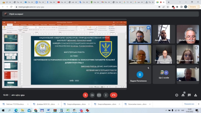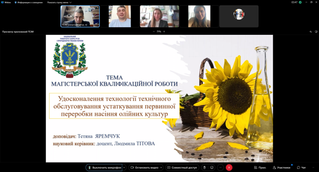 З 25 по 31 травня на кафедрах «Тракторів, автомобілів та біоенергоресурсів», «Охорони праці та біотехнічних систем у тваринництві», «Технічного сервісу та інженерного менеджменту ім. М.П. Момотенка» і «Сільськогосподарських машин та системотехніки ім. академіка П.М. Василенка» механіко-технологічного факультету, відбулися заслуховування наукових розробок дев’яти студентів магістратури.
