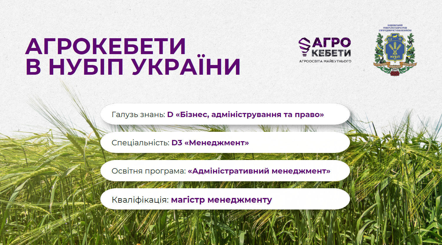 21 квітня 2026 року відбувся День відкритих дверей проєкту "Агрокебети" в онлайн форматі, метою якого було зорієнтувати випускників бакалаврату щодо вступу до магістратури загалом і на ОП "Адміністративний менеджмент", зокрема.