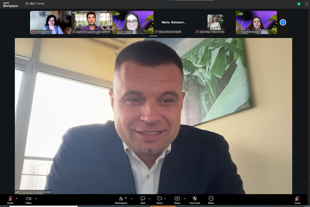 Ну і, звичайно, родзинкою зустрічі був виступ Олександра ВЕРЖИХОВСЬКОГО, СЕО компанії ІМК, який розказав про свій позитивний досвід менторства в проєкті "Агрокебети" та важливість цього проєкту як моделі співпраці агробізнесу та освіти.