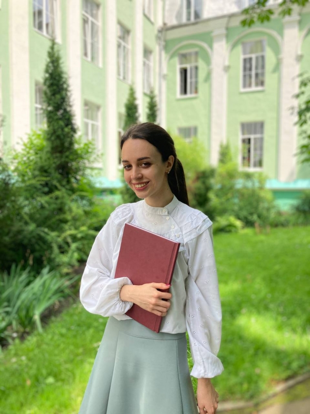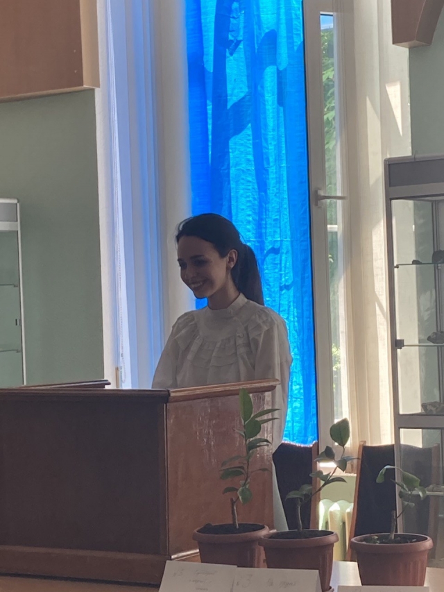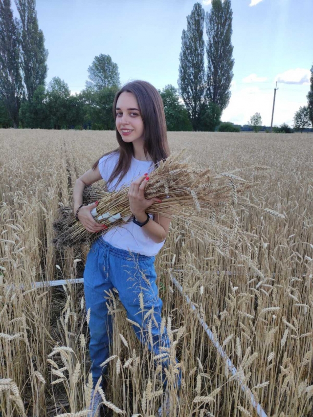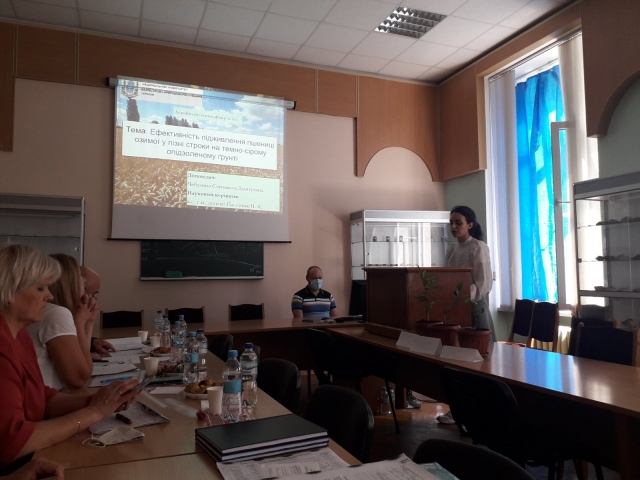 Єлизавета Чебуніна доповідає свою дипломну роботу з ефективності пізніх підживлень пшениці озимої
