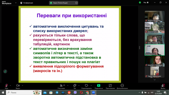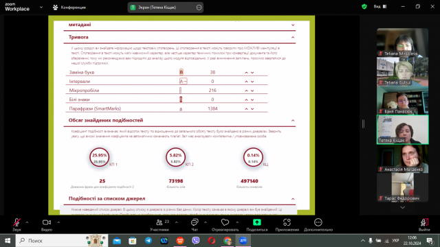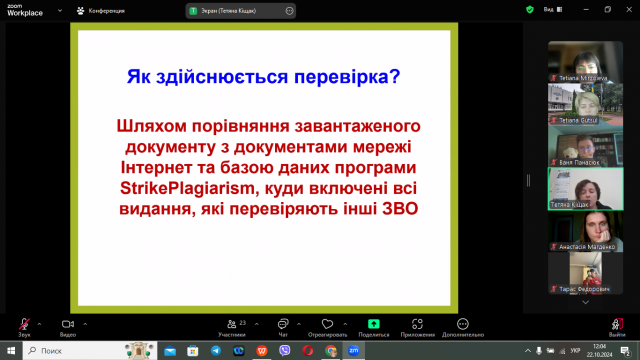 Майбутніх магістрів цікавило як здійснюється перевірка магістерських робіт на наявність плагіату, яка програма при цьому використовується в університеті і які її переваги та багато інших питань, на які вони отримала ґрунтовні відповіді.