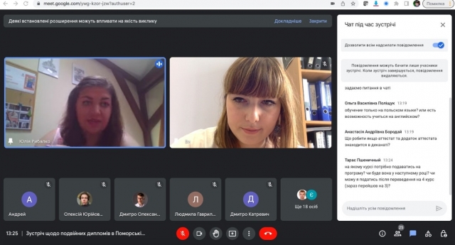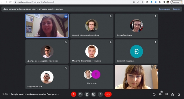 16 серпня 2022 року за сприяння декана факультету інформаціних технологій Глазунової Олени Григорівни відбулася онлайн зустріч студентів із координатором програми "подвійних дипломів" в Поморській академії (місто Слупськ, Польща) Рибалко Юлією Володимирівною.