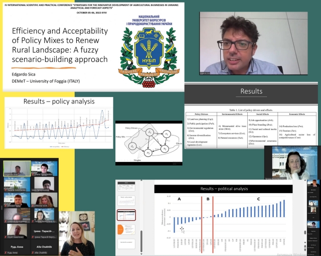 Друга, англомовна частина пленарного засідання, стала платформою обговорення стратегій інноваційного розвитку аграрних формувань в сучасних реаліях за участі іноземних спікерів. Професор Університету Фоджа Едгардо Сіка розглянув засади сучасних наукових підходів до дослідження ефективності та доцільності використання різних складових політики в аграрному секторі.