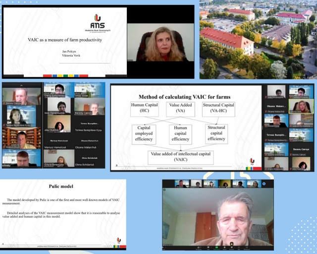 Продовжили секційні обговорення науковці Академії прикладних наук ім. Станіслава Сташіца в Пілі професор хабілітований Ян Полцин та адьюнкт Вікторія Вовк, які представили результати наукових напрацювань щодо бачення доданої вартості інтелектуального капіталу як міри продуктивності аграрного підприємства.