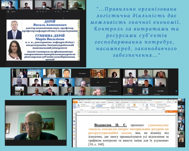 Питання аналізу та контролю за ефективністю використання матеріальних ресурсів на рівні окремих суб’єктів господарювання, громад висвітлив д.е.н., професор кафедри обліку і оподаткування Західноукраїнського національного університету, Дерій Василь Антонович. Під час жвавої дискусії були обговорені проблеми визнання значення аналітиків та їх місця в освітянській спільноті, а також наслідки звуження аналітичної складової в освітніх програмах на різних рівнях управління.