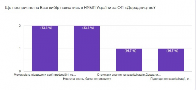 2) Вибору даної ОП «Дорадництво» здобувачами ОС «магістр» сприяло бажання підвищити рівень своєї професійної кваліфікації та компетенцій.