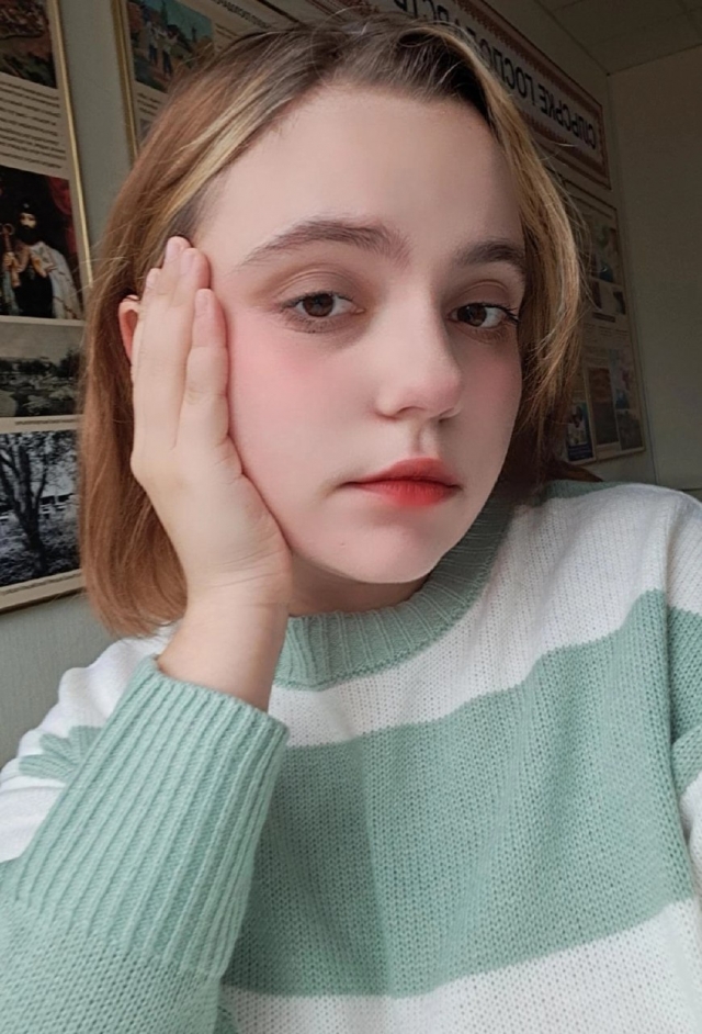 «Я з міста Прилуки, що на Чернігівщині. Навчалась у ЗОШ №13 до 8 класу, після чого змінила навчальний заклад на ЗОШ №14. Я з дитинства вважаю себе творчою людиною – полюбляла малювати та танцювати, проте згодом моїм основним захопленням стало написання невеликих творів з вигаданими мною персонажами. Окрім того, захоплююсь азіатською культурою, зокрема музикою та кінематографом.»