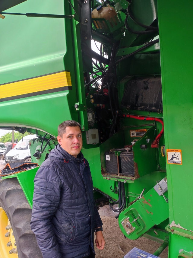 Аспірант Владислав КОРХ - виконує налагодження оптичних датчиків зернозбиральний комбайнів