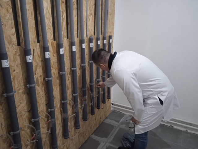Аспірант кафедри технічного сервісу та інженерного менеджменту імені М. П. Момотенка Олександр ДЕВ`ЯТКО проводить складальні, паяльні та слюсарні операції з укомплектування експериментального газгольдера.