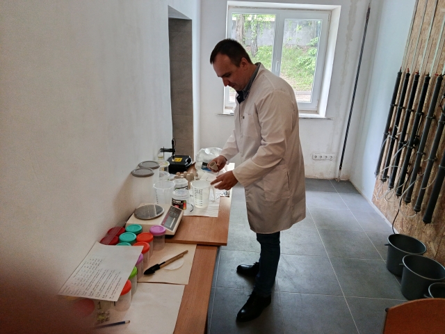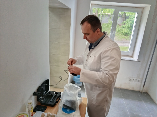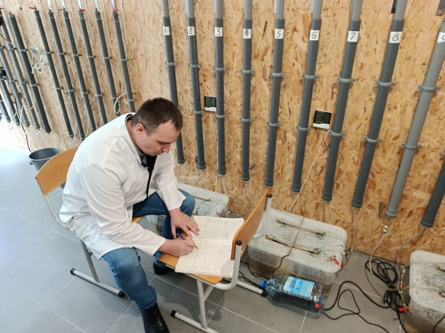 Аспірант кафедри технічного сервісу та інженерного менеджменту імені М. П. Момотенка Олександр ДЕВ`ЯТКО проводить тестові експериментальні дослідження експериментального газгольдера.