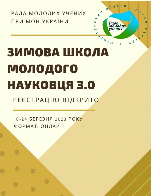 18 березня 2023 року в онлайн форматі розпочала роботу «Зимова школа молодого науковця 3.0» організована Радою молодих учених при Міністерстві освіти і науки України.