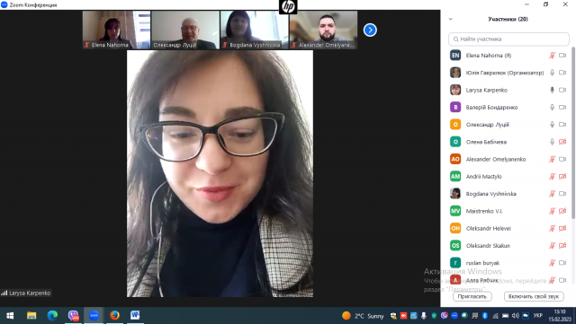 Відповідно до заздалегідь оголошеного порядку денного розпочали вирішувати актуальні питання функціонування кафедри. Першим питанням порідку денного було питання, яке стосується рекомендування викладача кафедри Карпенко Ларису Федорівну на отримання вченого звання доцента по кафедрі маркетингу та міжнародної торгівлі. У процесі обговорення взяли участь професор Бондаренко Валерій Михайлович, доценти Рябчик Алла Володимирівна, Вишнівська Богдана Вікторівна та Нагорна Олена Вікторівна, які зазначили високий професіоналізм, компетентність Лариси Федорівни. У результаті представлення всіх необхідних документів та виконання умов до присудження наукових ступенів кафедра рекомендувала Карпенко Ларису Федорівну до подачі документів для подальшого розгляду її кандидатури на присвоєння вченого звання доцента на Вченій Раді Університету.