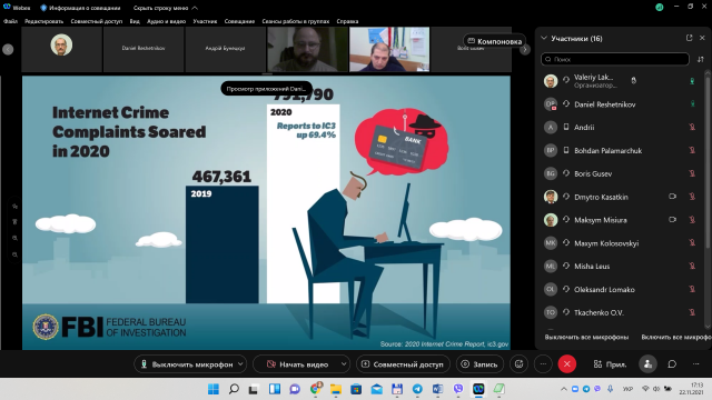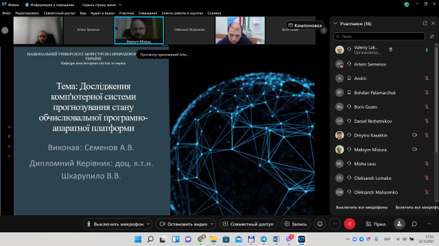 Викладачами кафедри комп'ютерних систем, мереж та кібербезпеки проведено онлайн-атестацію магістрів 1 року навчання 22.11.2021 р. Студенти презентували актуальність своїх тем, мету, об’єкт, предмет та основні завдання дослідження. В цілому розгляд концепцій магістерських робіт відбувся у професійному контексті, студенти відповідали на запитання та захищали обрані теми. За результатами спілкування усі магістри 1 року навчання спеціальності "Комп'ютерні системи та мережі" атестовані.