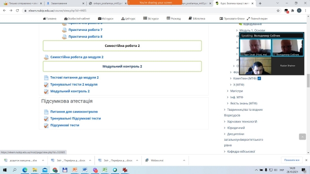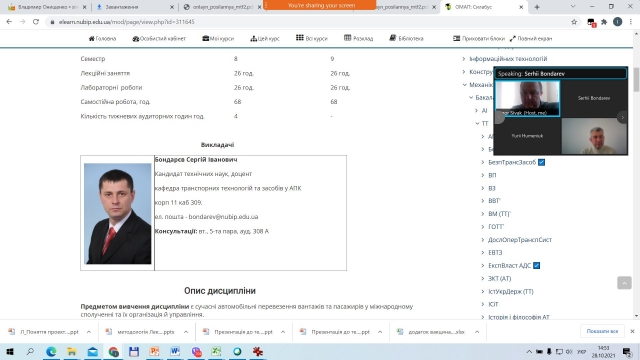 На дистанційному засіданні навчально-методичної комісії механіко-технологічного факультету, 28 жовтня 2021 року, проведено детальний аналіз електронних навчальних курсів, які підготовлені до проходження процедури атестації у листопаді поточного року.