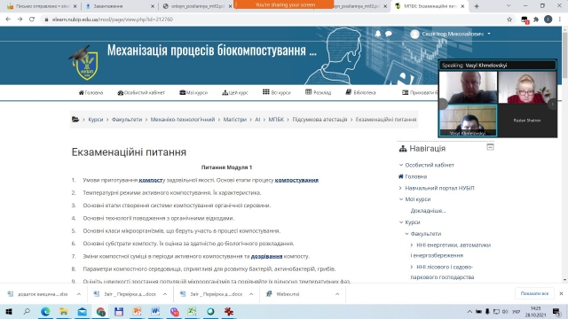 Розробники навчальних електронних курсів, презентували наповнення, дієвість функціоналу та відповідність їхнього продукту до діючих вимог НУБіП України. Зважаючи на дистанційну форму навчання, на якій знаходяться студенти всіх курсів факультету, вивчення дисциплін з використанням платформи E-learn, являється досить актуальним та рушійним. Опанування дисциплін, з використовуванням електронного ресурсу, необхідно підсилювати відеоматеріалами та динамічними презентаціями. Підсумкова атестація повинна налічувати, не менше 100 питань. Практичні заняття повинні бути доступними та зрозумілими для студентів.