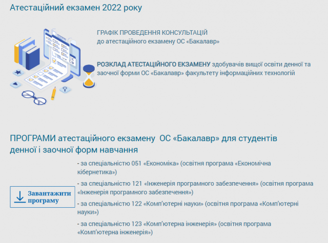 Здобувачі вищої освіти могли ознайомитись з запитаннями кожної спецiальності/освiтньої програми на сторінці факультету в розділі Атестаційний екзамен – 2022.