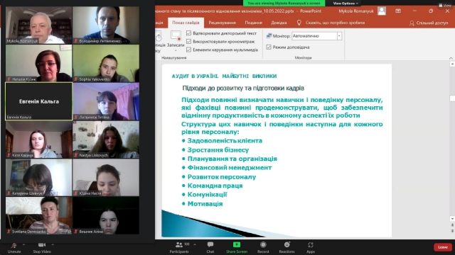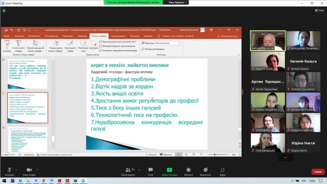 І, звісно, це викликає занепокоєння та розчарування, адже, український аудит за останнє десятиліття достатньо успішно розвивався і, навіть, здобувачі освітньої програми «Облік і аудит» це безпосередньо відчували, отримуючи багато запрошень на проходження стажування та працевлаштування від аудиторських компаній, в тому числі й міжнародних. До речі, М. Романюк зауважив, що основний майбутній виклик для аудиту в Україні – конкуренція за кадри. Приємно було почути позитивний відгук лектора про якість освіти і підготовку випускників освітньої програми «Облік і аудит» економічного факультету НУБіП України.