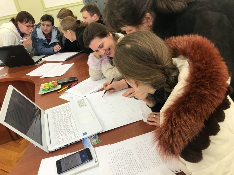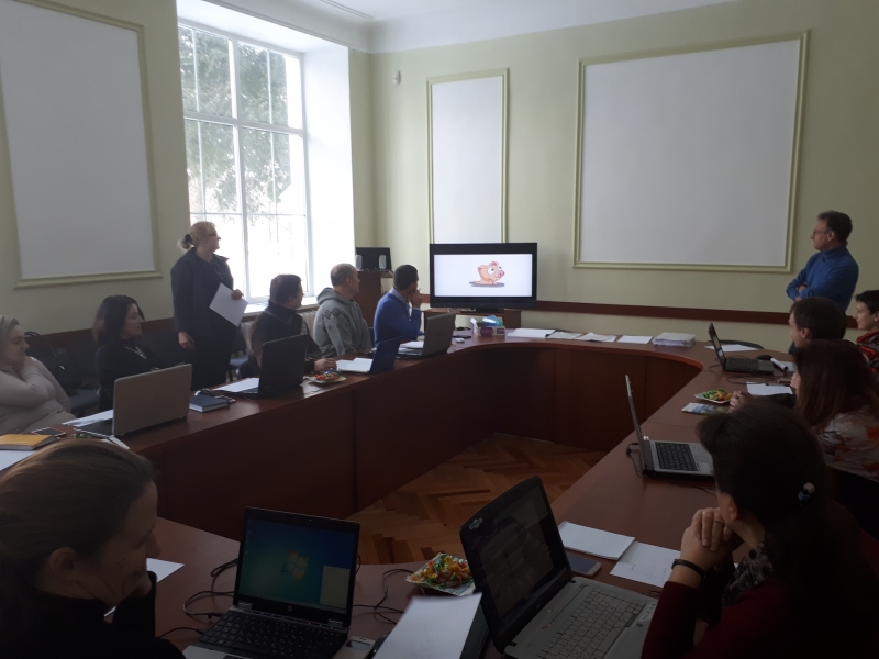 У перший день тренінгу учасникам було запропоновано різні інтерактивні форми роботи. Виконуючи творчі завдання вони мали змогу працювати у парах, міні-групах вдосконалюючи навички говоріння, сприймання мови на слух і взаємодіяти один з одним іноземною мовою. Тренінг викликав велике зацікавлення з боку учасників. Його робота буде продовжена протягом наступних п’яти днів і завершиться тестуванням учасників тренінгу для визначення їхнього рівня володіння англійською мовою.