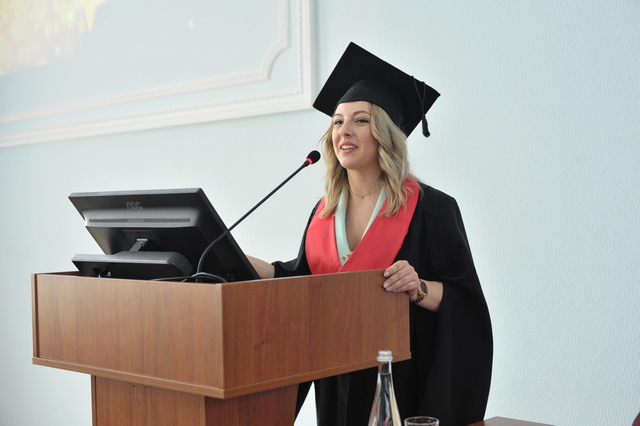 З словами вдячності й привітання від випускників виступила староста 4 курсу 1 групи Богдана Гнатенко.
