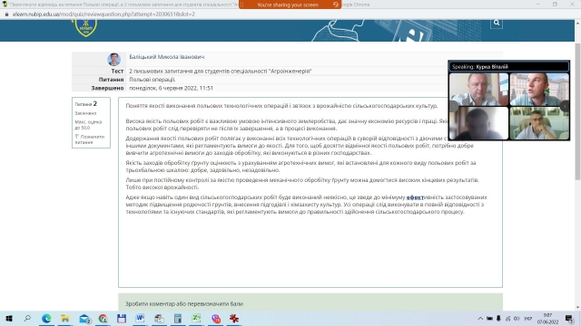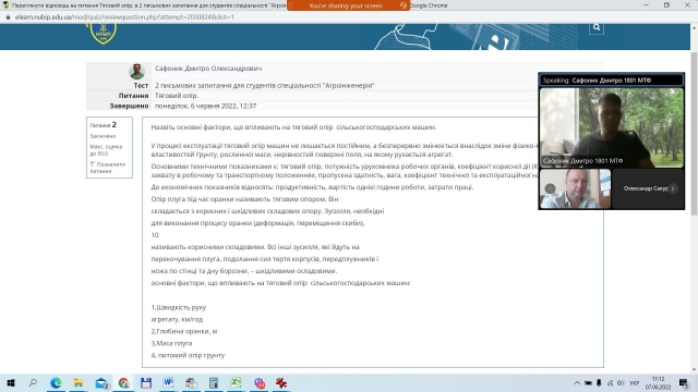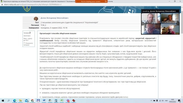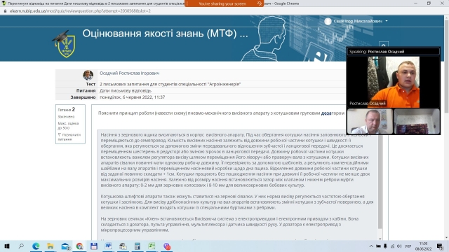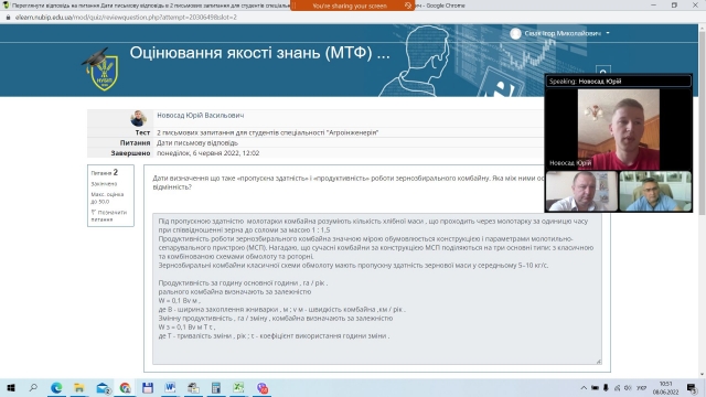 Орієнтуючись на наказ ректора НУБіП України, від 18 березня 2022 р. № 160 «Про завершення другого семестру 2021-2022 навчального року» та рішення Вченої ради механіко-технологічного факультету від 31 березня 2022 р., протокол № 7, студенти денної форми навчання ОС «Бакалавр» факультету, з 6 до 10 червня 2022 року пройшли остаточний контроль знань, у вигляді атестаційного екзамену.