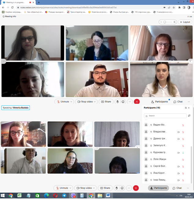В умовах воєнного стану, на жаль, захист відбувався в онлайн форматі на платформі Webex. Свою роботу із захисту бакалаврських кваліфікаційних робіт екзаменаційна комісія розпочала з привітального слова голови комісії Вікторії Байдали, яка побажала усім учасникам успішно презентувати результати виконаних досліджень. Тереза Микицей ознайомила присутніх із організаційними питаннями проведення захисту, зокрема послідовністю та регламентом захисту тощо. Інна Левицька, повідомила присутнім, що бакалаврські кваліфікаційні роботи, були вчасно здані на кафедру, пройшли перевірку на плагіат, в наявності є позитивні рецензії зовнішніх рецензентів та відгуки керівників.