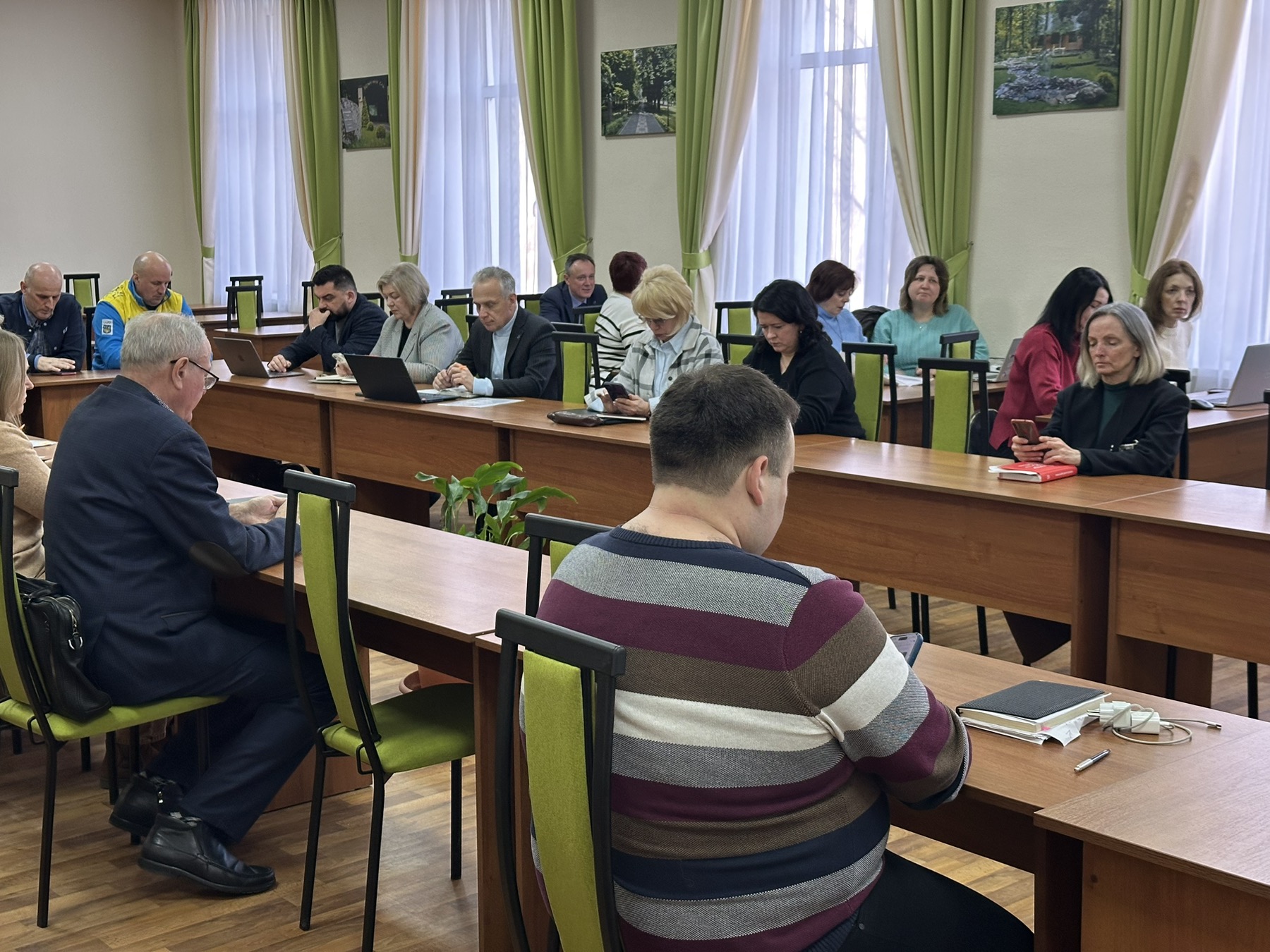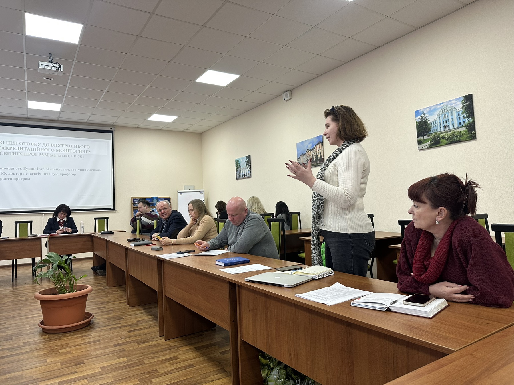 Гаранти програм Сергій КУБІЦЬКИЙ (ОПП «Управління персоналом») та Олександр КУЧАЙ (ОПП «Інформаційно-комунікаційні технології в освіті») представили: особливості та унікальність освітніх програм; структуру навчальних планів і логіку компонентів; кадрове забезпечення; дорожню карту підготовки до акредитації.