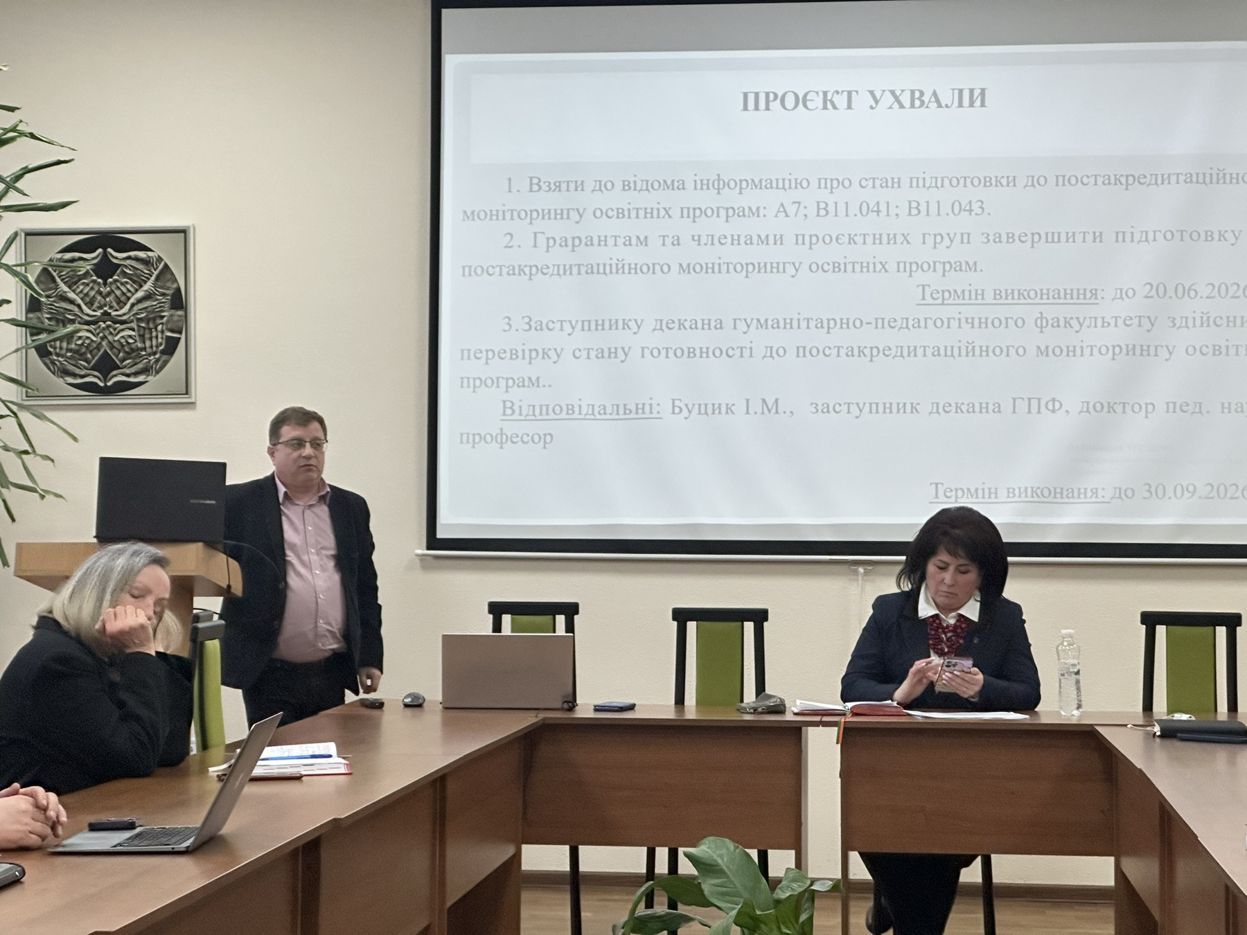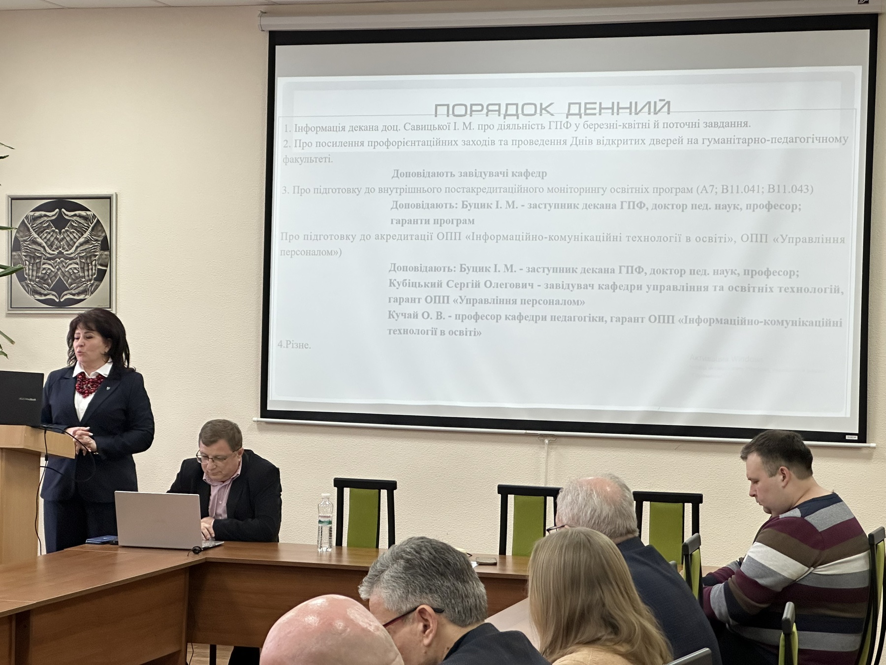 Заступник декана Ігор БУЦИК доповів про підготовку до внутрішнього постакредитаційного моніторингу освітніх програм (А7; В11.041; В11.043).