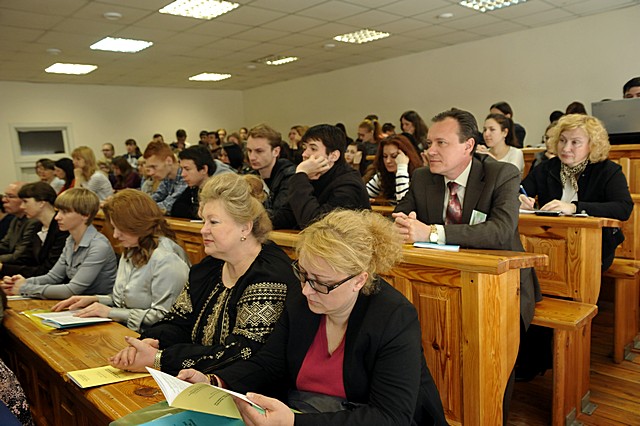 Свою доповідь доцент кафедри політичної економії Київського національного економічного університету імені Вадима Гетьмана Володимир Сацик присвятив питанню, наскільки вища освіта в Україні «вища» порівняно зі світовими стандартами. Доповідач зазначив, що освіта є найпотужнішою зброєю, яку можна використати, щоб змінити світ. Але чи є такою потужною зброєю вітчизняна освіта? Відповідь очевидна. Одна із причин лежить в економічній площині. За словами гостя, освіта апріорі не можлива без економічних перетворень. Наше ж завдання полягає в тому, аби, доклавши всіх зусиль, віднайти ті механізми, які підняли б її на високий рівень.
