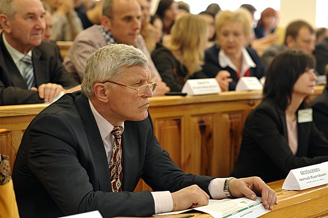 До колег, гостей звернувся ректор університету Станіслав Ніколаєнко. Від імені 27-тисячного колективу вишу він щиросердечно привітав наукове зібрання. Станіслав Миколайович відзначив безперечну актуальність обраної теми конференції. Адже освіта і наука – ті чинники, які спрямовують вибір оптимального розвитку держави. Ректор нагадав, що завтра країна святкуватиме День науки. Сьогодні ж у державі ведуться дискусії, чи існує у нас наука взагалі та яка віддача від неї? Добре, якщо такі дискусії конструктивні, спрямовані на розвиток, а не як це буває часто-густо на руйнацію. Вклад селекціонерів, лікарів, педагогів та інших представників української науки очевидний та неоціненний, - наголосив очільник вишу. Він зазначив, що ні в якому разі ми не можемо зупинитися у підготовці кадрів, бо без якісної освіти і науки не побудуємо державу.