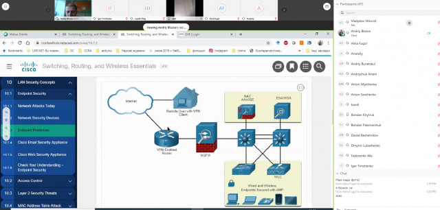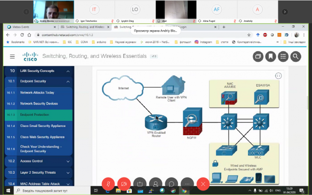 Даниїл Решетніков: Карантин карантином, а навчання слід продовжувати! Саме тому, на факультеті інформаційних технологій активно використовуються засоби для дистанційного навчання. Найбільше застосування знайшов Cisco Webex Meeting – зручний сервіс для відео-конференцій, що підтримує велику кількість учасників та функцію чату.
