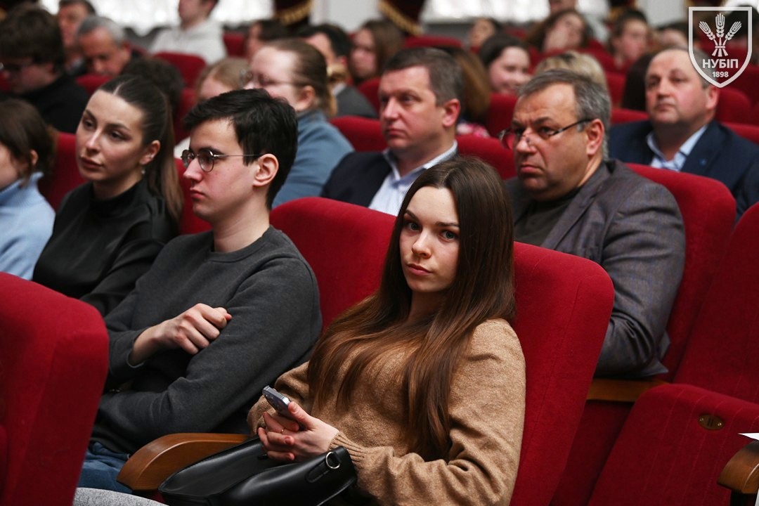 18 березня 2026 року у Національному університеті біоресурсів і природокористування України відбулася зустріч ректора університету Вадима ТКАЧУКА зі студентським активом. Під час виступу очільник університету підняв актуальні питання безпеки в умовах воєнного стану, інформаційної та цифрової гігієни, академічної доброчесності, студентської дисципліни, а також роль молоді у формуванні позитивного іміджу університету.