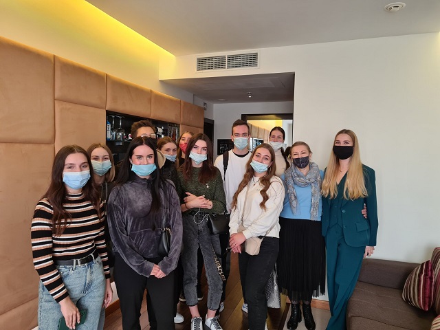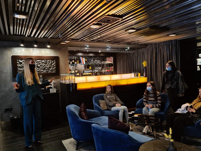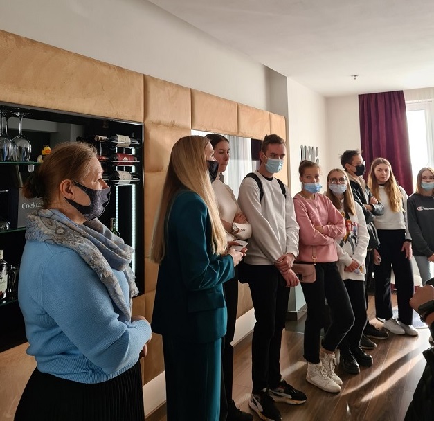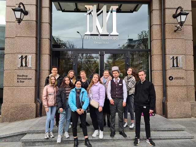 У супроводженні менеджера фронт-офісу готелю Ліною Сідлецькою студенти познайомились з неповторною атмосферою гостинності, креативним підходом до створення готелю, що підтверджує світовий імідж унікального суб’єкту сфери гостинності.