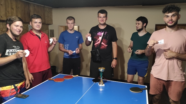 Отже, перехідний кубок чемпіона групи ТТ-1905 з настільного тенісу залишається у кімнаті 220 гуртожитку. Напевно, минулорічному чемпіону, Олександру Кулішу, не варто було залишати щасливу кімнату! Дякуємо Олександру за підготовку до турніру та яскравий репортерський супровід поєдинків! Дякуємо також учасникам турніру – Сірецькому Дмитру та Кісілю Владиславу за гідну боротьбу!