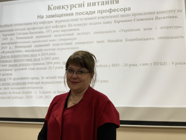 Вчена рада підтримала рекомендації кафедр і ухвалила кандидатури Ярослава Рудика на заміщення посади доцента кафедри управління та освітніх технологій, Олега Єреська – кафедри педагогіки; Карини Власенко – кафедри соціальної роботи та реабілітації; Олени Балалаєвої, Тараса Горбатюка, Тетяни Кичкирук, Ірини Матвієнко, Світлани Христюк та Дмитра Чорноморденка – кафедри філософії та міжнародної комунікації; Оксани Булгакової, Наталії Кравченко, Олени Кропивко та Людмили Лановюк – кафедри міжнародних відносин і суспільних наук; Ірини Сидоренко та Ярини Пузиренко – кафедри культурології; Віри Пироговської – кафедри журналістики та мовної комунікації, Маріанни Гольцової, Оксани Захуцької та Оксани Теплої – кафедри іноземної філології і перекладу, Світлани Качмарчик та Людмили Шанаєва-Цимбал – кафедри англійської філології; Сави Бринзака та Віталія Мирошніченко – кафедри фізичного виховання.