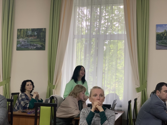 Розпочала роботу голова вченої ради, декан гуманітарно-педагогічного факультету Інна Савицька, яка поінформувала членів ученої ради, запрошених, присутніх про підсумки діяльності за квітень та поточні завдання факультету, зокрема про проведення Міжнародної науково-практичної конференції “Розвиток лідерського потенціалу жінок в академічному середовищі: міжнародний досвід для потреб розбудови України” (організована кафедрою філософії та міжнародної комунікації, кафедрою соціальної роботи та реабілітації); про організацію зборів студентів та персоналу у виборах кандидата на посаду ректора; про очне навчання на 1-2-3-4 курсах та початок сесії на початку травня для студентів 4 курсу тощо. Інна Миколаївна зупинилася й на заходах, які заплановано на травень: графік освітнього процесу (з 20 травня – літня екзаменаційна сесія); вибори ректора університету (28 травня); День університету – 31 травня тощо.