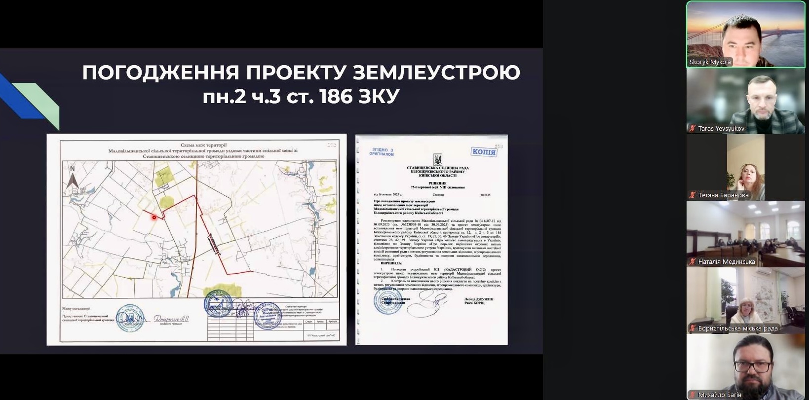 Завершальним етапом було погодження меж громади, потому затвердження проекту і внесення даних до Державного земельного кадастру.