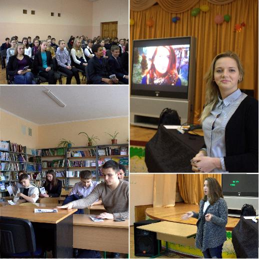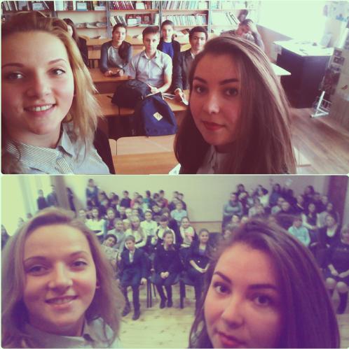 Їх тепло зустріла завуч цього комплексу – Зарва Наталія Василівна. Студенток зворушила така увага. І на серці стало легко… Вона запропонувала провести профорієнтаційну роботу в актовій залі, куди спочатку прийшли учні 6, 8, 9 та 10-тих класів. На наступному уроці була більш відповідальна місія – довелося бути віч-на-віч з випускниками. У бібліотеці Уляна і Наталія поділилися своїм абітурієнтським досвідом вступу у НУБіП України, враженнями про навчання на факультеті (нехай кілька місяців, проте якого насиченого студентського життя!), з 11-им класом.