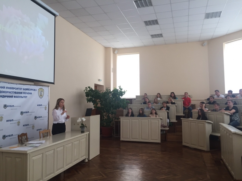 З вітальним словом до присутніх звернулася декан юридичного факультету Олена Яра та її заступниця Олена Улютіна, які привітали випускників шкіл та коледжів із їх новим статусом, ознайомили із історією та структурою факультету, розповіли про особливості навчання у вищій школі та відповіли на запитання.