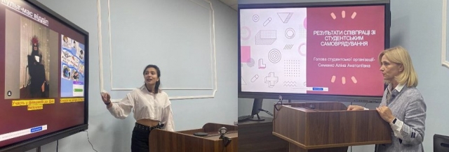 З вітальним словом до студентів звернулась декан факультету інформаційних технологій Глазунова Олена Григорівна, а далі свій звіт про роботу в якості голови студентської організації факультету інформаційних технологій представила студентка 4 курсу спеціальності 122 «Комп’ютерні науки» Аліна Семенко.