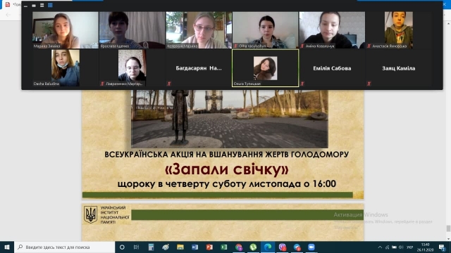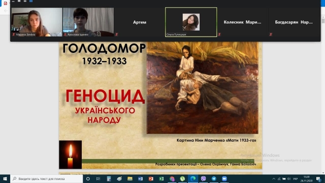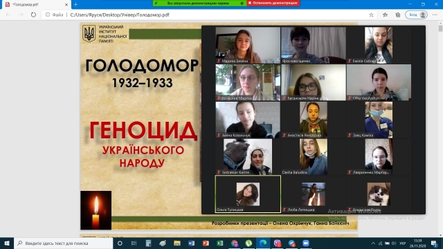 Напередодні Дня вшанування пам'яті жертв Голодомору 1932–33 років, який цього року припадає на 28 листопада, куратор Ольга Тупицька разом зі студентами 7 групи 3 курсу факультету ветеринарної медицини провела виховну годину, присвячену 87-й річниці Голодомору в Україні 1932–1933 років.