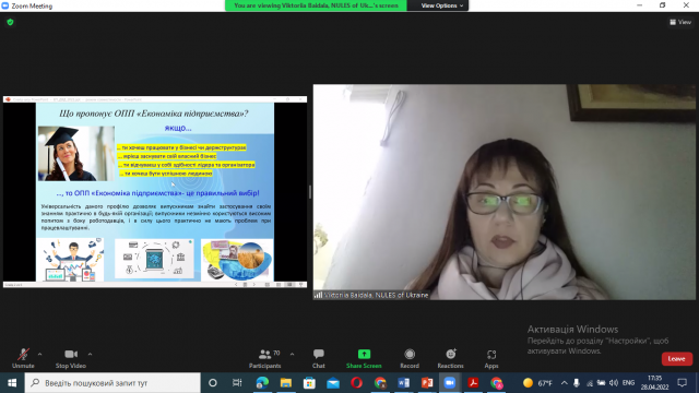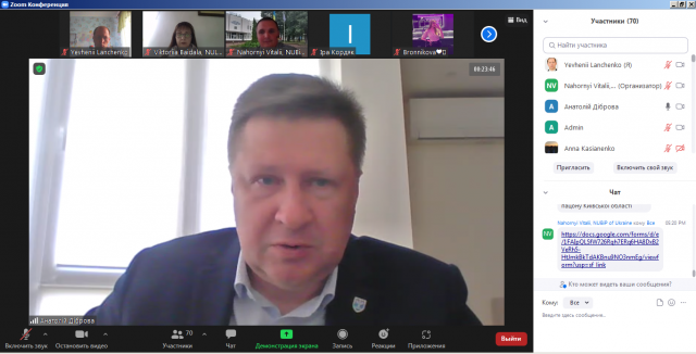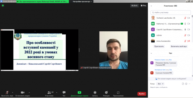 Про велику зацікавленість здобуття освіти за фахом економіста свідчить кількість присутніх на відео – конференції: 74 особи, у тому числі 53 школярі та студенти коледжів із різних регіонів нашої країни, які зацікавилися умовами вступу на економічні спеціальності НУБіП України. З метою висвітлення особливостей умов вступу цього року був запрошений відповідальний секретар приймальної комісії нашого університету Сергій Ковалевський, який розповів гостям про вступну кампанію, як на бакалаврат, так і в магістратуру.