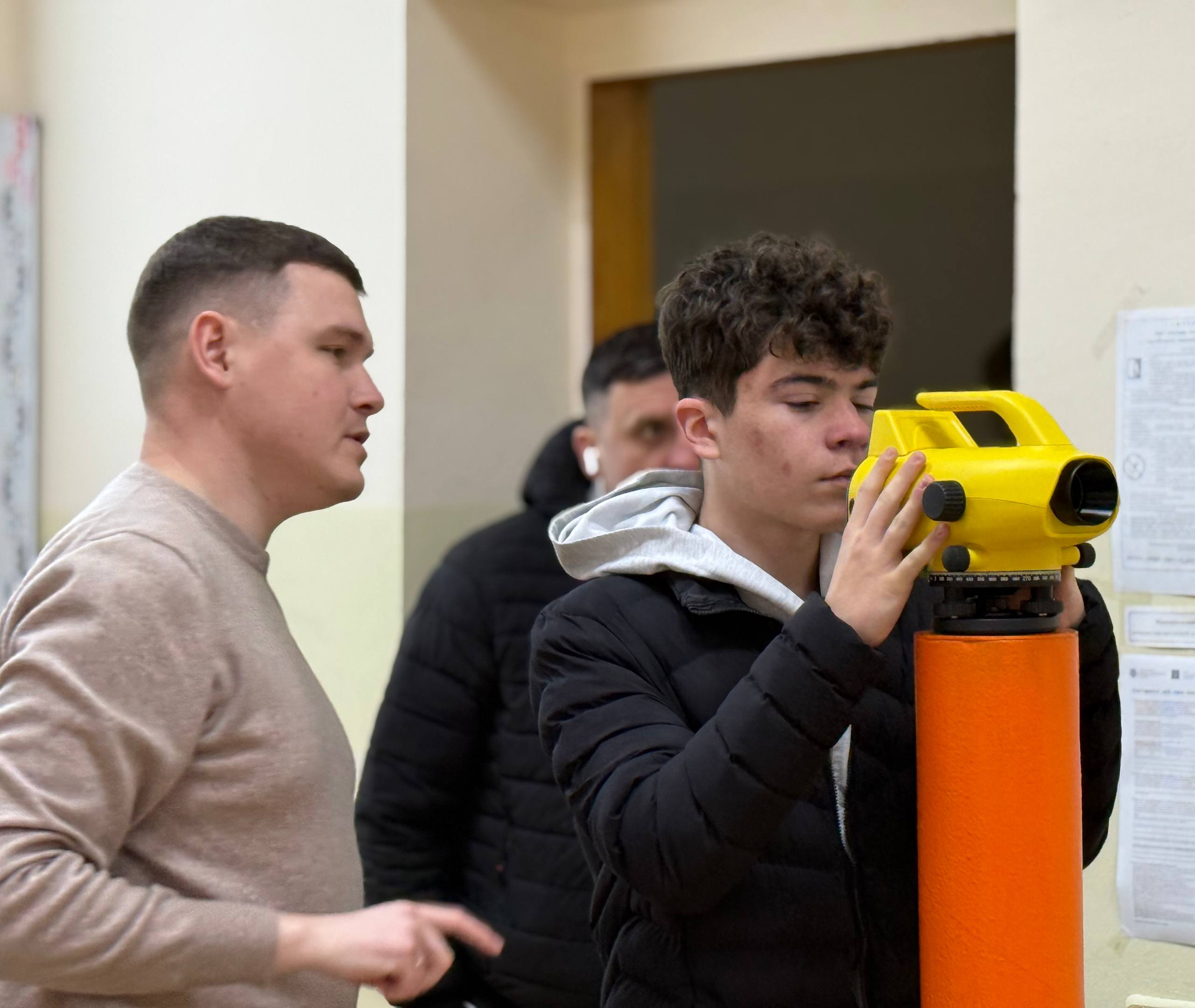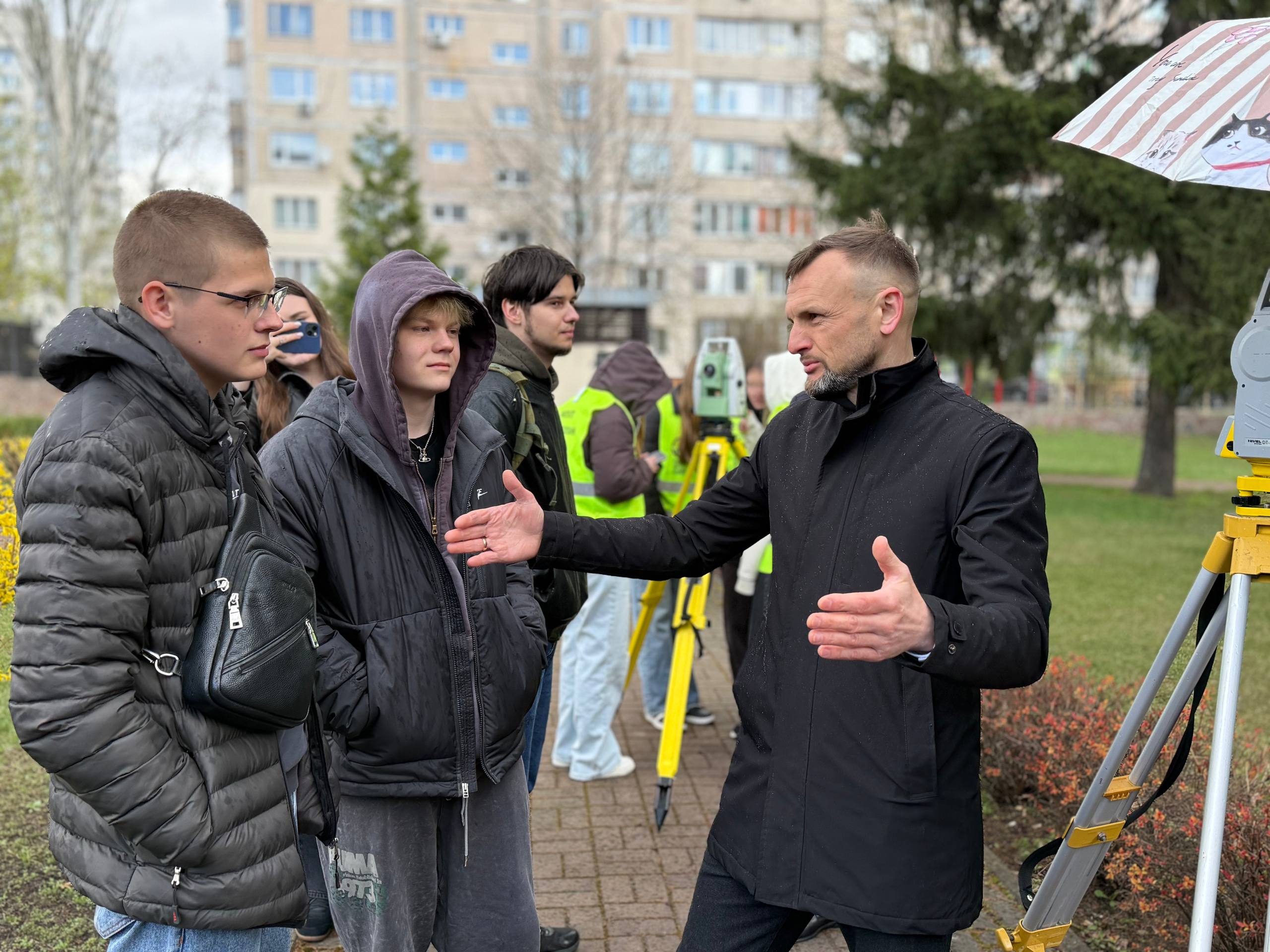 Особливе зацікавлення викликала практична частина заходу, організована у форматі інтерактивних майстер-класів. Вступники мали змогу ознайомитися з сучасним геодезичним обладнанням: GNSS-приймачами, електронними тахеометрами та нівелірами, зрозуміти принципи їх роботи та побачити, як ці технології застосовуються в професійній діяльності. Під керівництвом завідувача кафедри геодезії та картографії Тараса ЄВСЮКОВА, а також професора Івана ОПЕНЬКА та доцента Олексія ЖУКА учасники не лише спостерігали, а й долучалися до виконання практичних завдань.