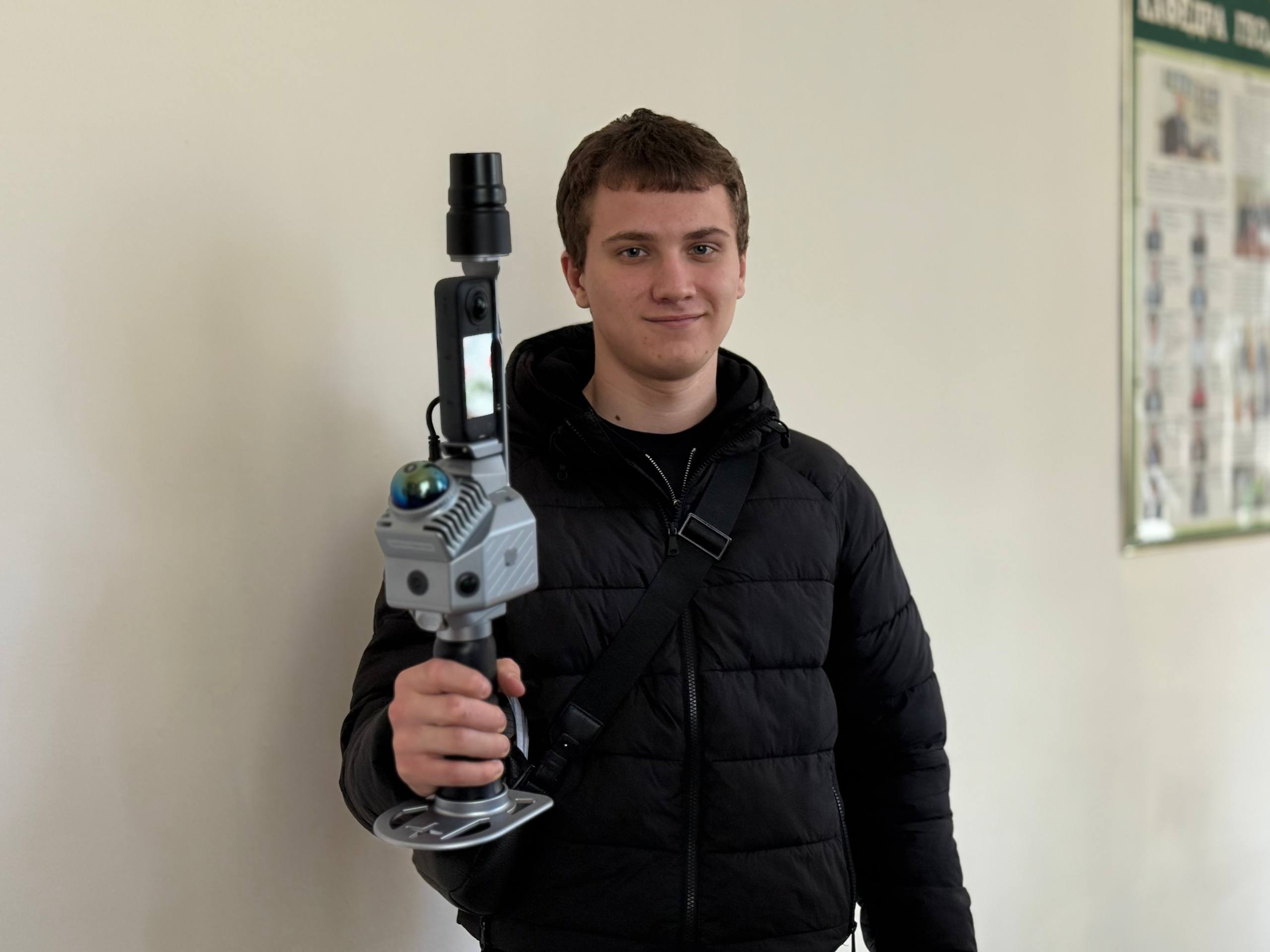 Справжній інтерес викликала демонстрація використання безпілотних літаючих апаратів, яку провів доцент кафедри управління земельними ресурсами Євген БУТЕНКО. Вступники дізналися, як дрони застосовуються для аерофотозйомки, створення ортофотопланів та аналізу територій. Додатково учасники мали змогу побачити роботу мобільного лазерного сканера SLAM Lixel K1 та спробувати себе в лідарному зніманні об’єктів. Цю частину заходу представив випускник факультету землевпорядкування та член ради роботодавців Олексій КУЦЕНКО, який провів змістовний майстер-клас і детально розповів про сучасні технології, що активно застосовуються в професійній діяльності. Під час спілкування він поділився власним практичним досвідом, акцентувавши увагу на тому, що сьогодні ринок праці потребує фахівців, які володіють сучасними інструментами та мають ґрунтовну підготовку. Олексій також зазначив, що активно залучає студентів факультету до роботи, надаючи їм можливість ще під час навчання отримувати цінний практичний досвід і впевнено розпочинати професійну кар’єру.