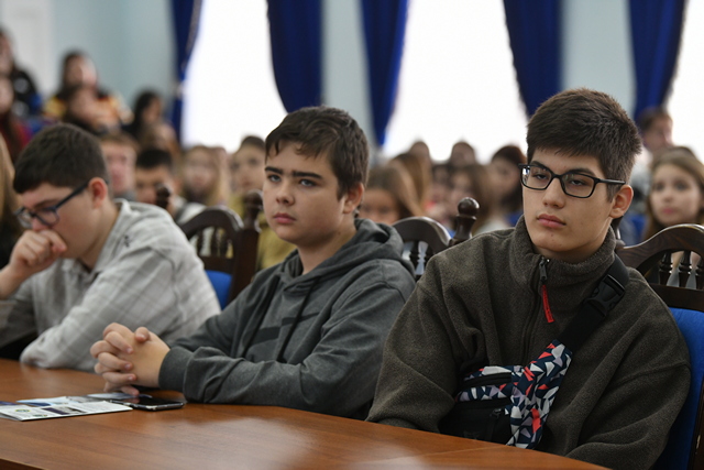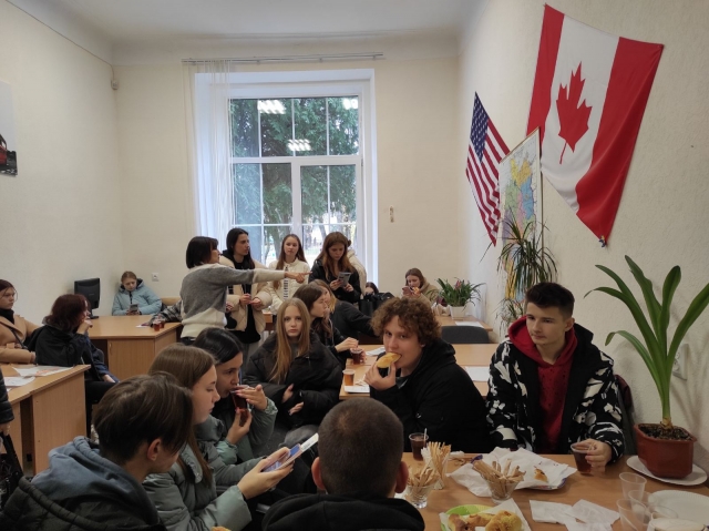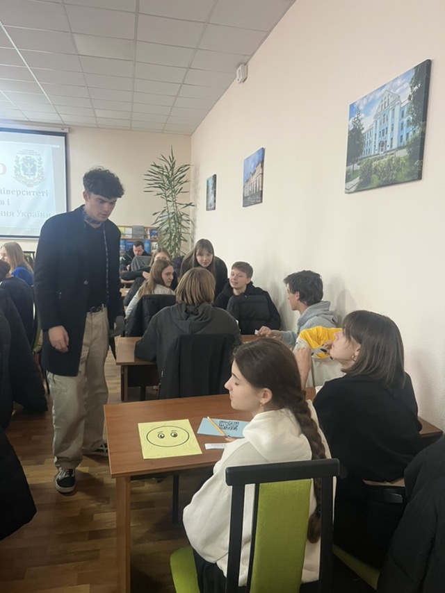 Аби знайомство було більш невимушеним і цікавим, гостям запропонували інтерактивні бліц-заняття з латинської мови (Олена Балалаєва), історії держави і права України та зарубіжних країн (Світлана Гейко). На зустрічі прозвучали вірші іспанських, англійських та німецьких поетів у виконанні Дмитра Самардака. Адже знання мов розширює міжкультурну комунікацію та сприяє порозумінню на міжнародному рівні. Школярі з радістю брали участь у квестах, вікторинах, інтелектуальних іграх, які провели Олена Лаута, Аліна Супрун, Ірина Матвієнко, Оксана Притика. Спілкування проходило у щирій та невимушеній атмосфері, гості пригощалися смаколиками.